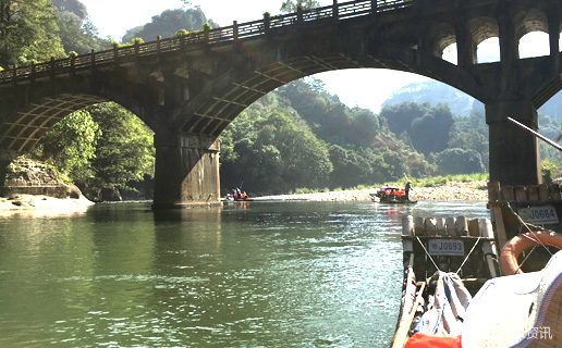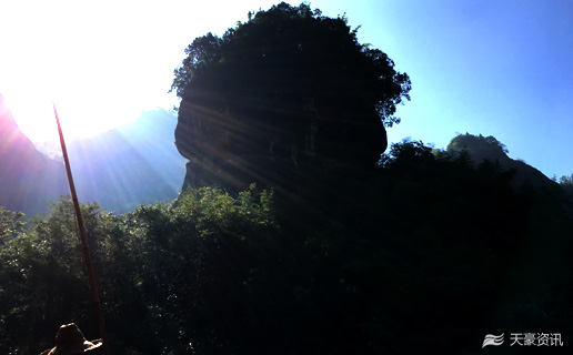 行程第二站“九曲溪竹筏漂流”,盈盈一水,折為九曲,故此得名——九曲溪。在竹筏上,工作中的緊張?jiān)缫巡粡?fù)存在,感受著大自然所賜予的一切。筏工沿途仔細(xì)地介紹了宛如少女亭亭玉立的玉女峰、像漢堡包的磨盤峰、被鐵拐李打破的酒壇峰、與玉女峰相戀的大王峰等,每一曲好像一幅天然的山水畫,沉浸在其中,不忍離開自己視野。