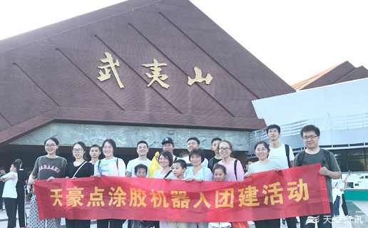 第三天早上,“天豪點(diǎn)涂膠機(jī)器人”成員前往武夷第一勝地、亞洲第一巨石——天游峰,天游峰海拔408.8米,1000多層的臺(tái)階讓很多同事都停住腳步,可作了一番思考后依然跟上大部隊(duì)上山頂,烈日炎炎的天氣照曬著天豪的成員們,很多同事生怕落在后面的女生上不去,吃不消,一句句的喊著名字,不僅是知道她們沒什么事,也是在鼓勵(lì)她們,你們可以的,我們?cè)谇懊娴戎銈?,這樣的舉動(dòng)讓人在心中有一股暖流,這只有家里的大人才會(huì)一遍一遍不耐煩的鼓勵(lì)著,這個(gè)家是每個(gè)天豪人心里的一股暖流,一個(gè)港灣。我們無(wú)懼無(wú)畏,咬牙上山,這個(gè)就是天豪人在日常生活、日常的工作,無(wú)畏無(wú)懼、咬牙堅(jiān)持、突破自我,在我們堅(jiān)持不懈,互幫互助下,都上了山頂,蔚藍(lán)的天空是背景,遼闊的山景是承托,每個(gè)人都大喘氣、臉上掛著汗珠,但是每個(gè)人臉上的笑容是真實(shí)的,一個(gè)個(gè)的爭(zhēng)先恐后的拍著一張張“游客照”,突破自我的感覺讓每個(gè)人都很輕松、興奮。在短暫的休息后,我們陸續(xù)的下山了。