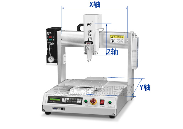 三軸點(diǎn)膠機(jī),也稱自動點(diǎn)膠機(jī),顧名思義是采用三軸平臺(XYZ)專門對流體進(jìn)行控制,并將流體以點(diǎn)、涂、噴等工藝形式附于產(chǎn)品表面或產(chǎn)品內(nèi)部的自動化設(shè)備。三軸,在點(diǎn)膠行業(yè)里,分別是X軸,Y軸和Z軸。X軸,控制左右的運(yùn)行;Y軸,控制工作臺前后的運(yùn)行;Z軸,控制上下的運(yùn)行。我們知道XY兩軸聯(lián)動可以構(gòu)建二維涂膠路徑,完成二維圖形平面的點(diǎn)、線、圓、弧、面作業(yè);那么XYZ三軸聯(lián)動就可以構(gòu)建三維涂膠路徑,完成包含二維在內(nèi)的更復(fù)雜的涂膠路徑。