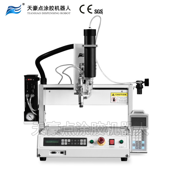 機(jī)器搭載膠閥式310ml支裝膠專用控膠系統(tǒng)以及懸浮型機(jī)械手結(jié)構(gòu),一般適用于低中高各種常規(guī)粘度膠水(如玻璃膠、密封膠、聚氨酯、硅膠、UV膠等310ml硬包裝的膠水)的產(chǎn)品自動(dòng)點(diǎn)涂膠作業(yè),如發(fā)動(dòng)機(jī)配件,密封件等。另外,機(jī)器采用天豪自創(chuàng)的回吸式精密膠閥控制技術(shù),能夠輕松將膠水關(guān)斷不殘留,從而實(shí)現(xiàn)高質(zhì)量、高效率以及高要求的自動(dòng)點(diǎn)涂膠工藝。