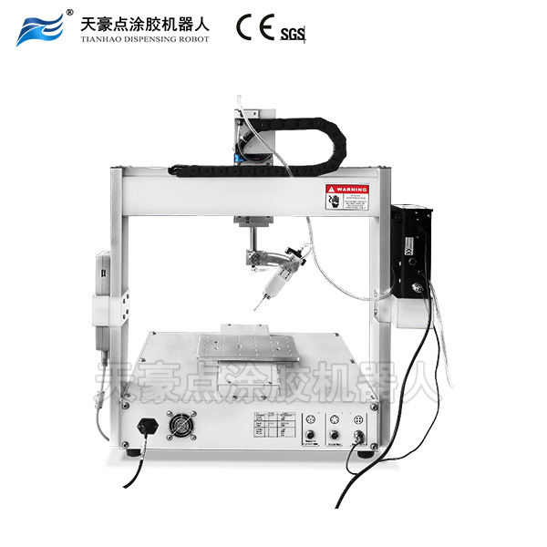 機(jī)器搭載針筒式精密定量控膠系統(tǒng)以及四軸側(cè)立面運(yùn)動控制機(jī)構(gòu),一般適用于小膠量的產(chǎn)品點(diǎn)膠工藝,其可代替人工在產(chǎn)品內(nèi)壁、外壁、垂直面或縫隙內(nèi)等進(jìn)行快速打點(diǎn)、畫線、畫圓等自動點(diǎn)涂膠作業(yè),并具備出膠定量精度高、重復(fù)性好等特點(diǎn)。